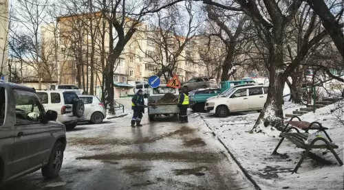 Дорожники Владивостока просят автомобилистов, припарковавших свой транспорт на подъездах к площадкам ТБО, убрать машины.