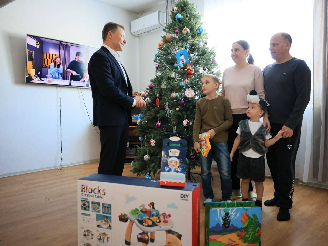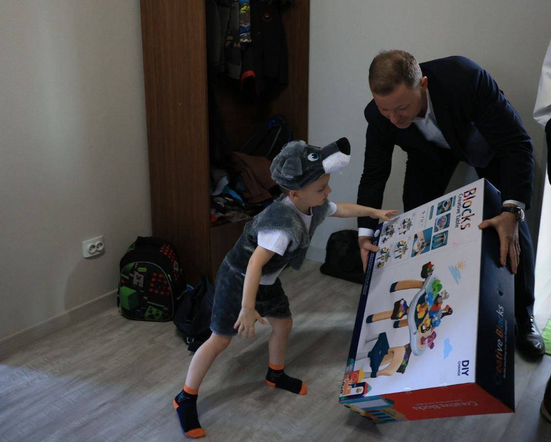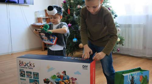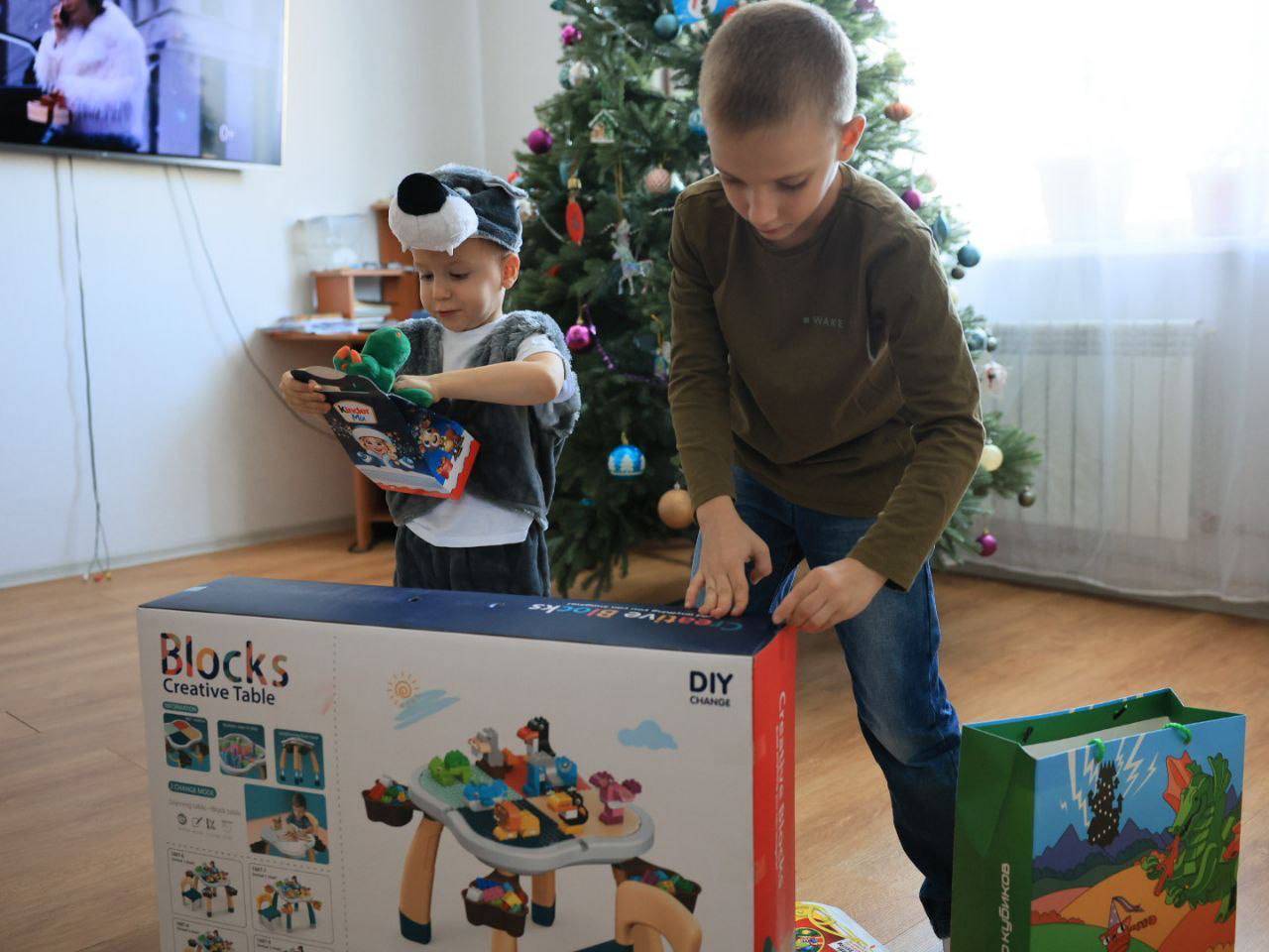 Он исполнил заветную мечту трехлетнего Богдана, подарив ему игровой стол. А его 9-летний брат Никита получил в подарок конструктор.