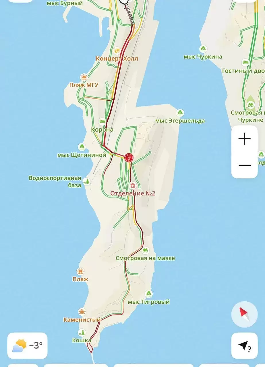 Движение автотранспорта практически парализовано в районе Эгершельда - от Токарёвского маяка до ж/д вокзала, - сообщает "Вести: Приморье".