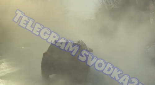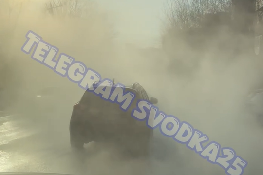 А на дороге ближе к железнодорожному вокзалу случился порыв теплотрассы и кипяток льется прямо под колеса авто.