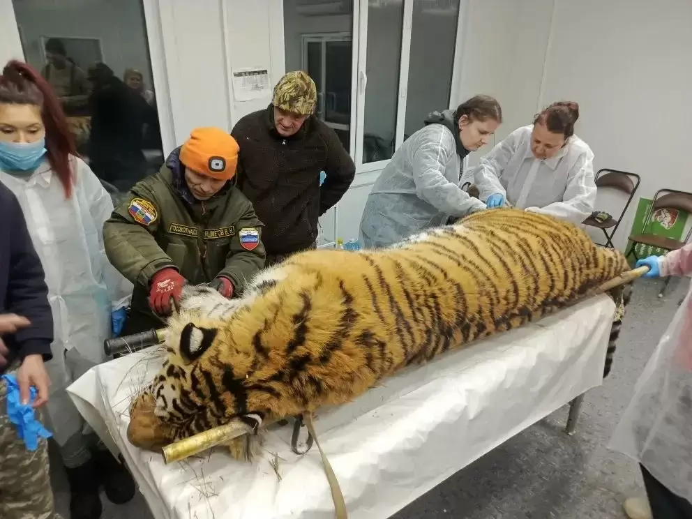 Специалисты осмотрели отловленного в Приморье тигра и двух спасенных тигрят-сирот
