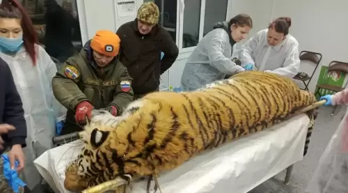 Специалисты провели осмотр отловленных в Надеждинском округе тигра и тигрят в Тернейском районе, - сообщает "Вести: Приморье".