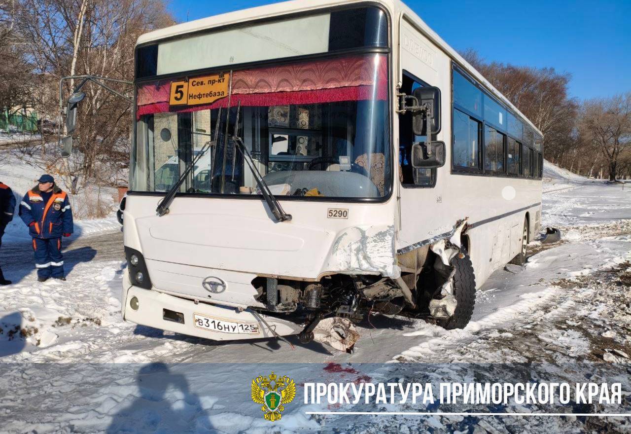 В результате ДТП, уточняет пресс-служба прокуратуры Приморья, госпитализированы женщина-водитель 2007 года рождения легкового автомобиля и пассажирка автобуса.