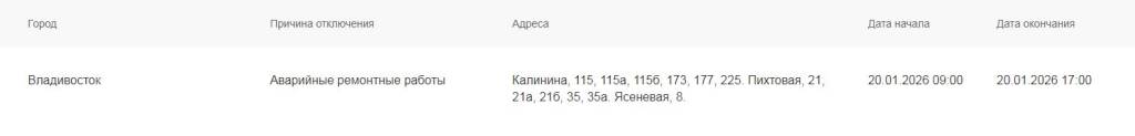 Во вторник. 20 января, часть многоквартирных домов Владивостока останутся без холодного водоснабжения.