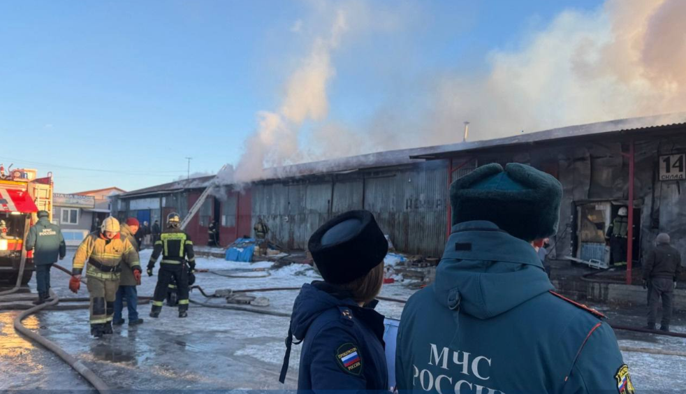 Мощный пожар бушует на овощных складах в Находке