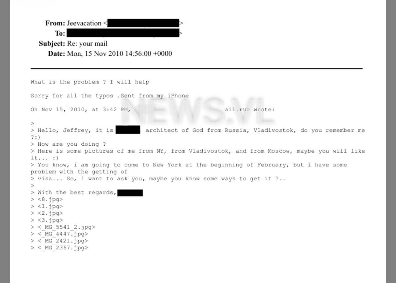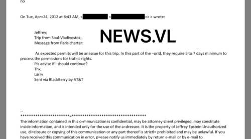 В документах и фрагментах переписки говорится о контактах Эпштейна с несколькими девушками из Владивостока, которые, по данным архивов, общались с ним и бывали в США. Речь идёт об упоминаниях личных встреч, электронной переписки, перелётов и пребывания на территории страны. Отдельно в архивах упоминается переписка, где Эпштейн обсуждал возможность перелёта из Кореи во Владивосток и уточнял требования к чартерным рейсам. Из писем следует, что поездка так и не состоялась из-за длительных согласований, не укладывавшихся в его график.