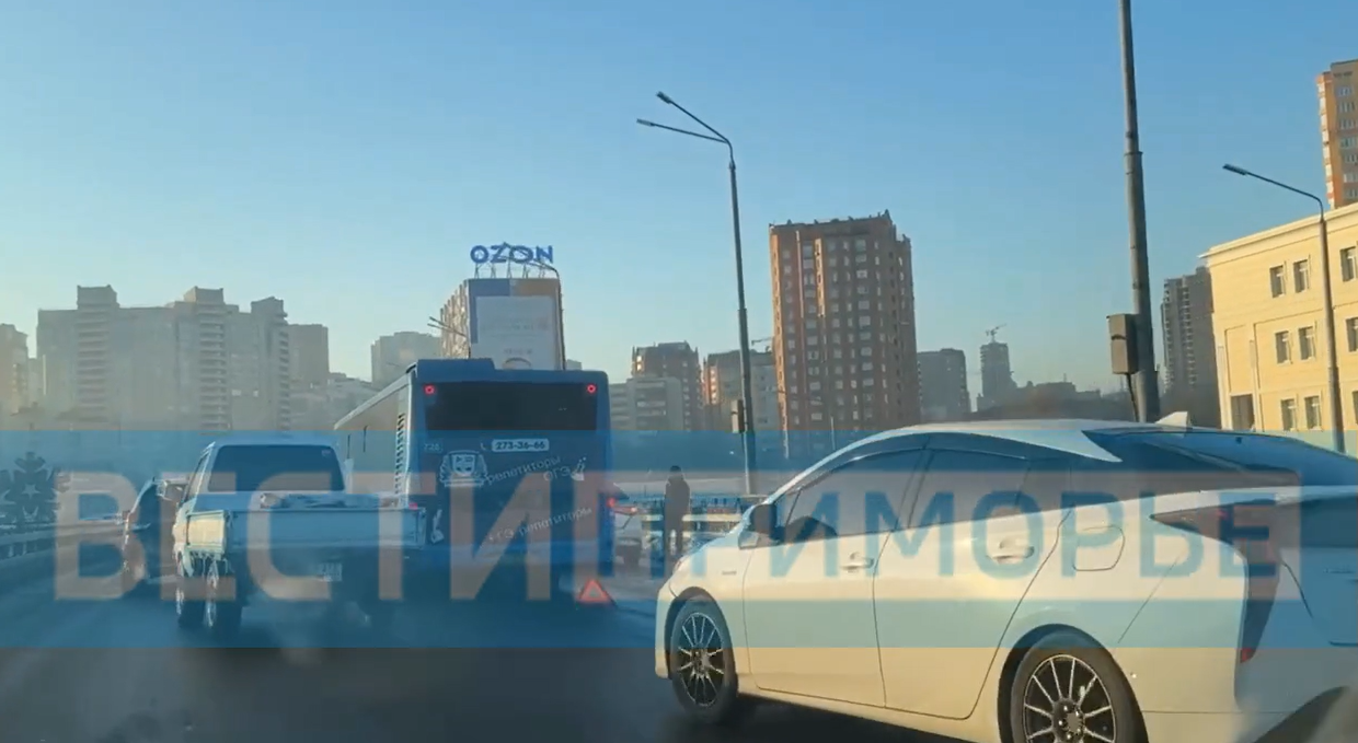 3 февраля в утренний час пик на Некрасовском путепроводе во Владивостоке произошло ДТП - пассажирский автобус притер легковушку, - сообщает "Вести: Приморье".