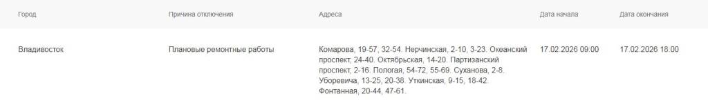 Во вторник, 17 февраля, часть многоквартирных домов Владивостока останется без холодного водоснабжения.