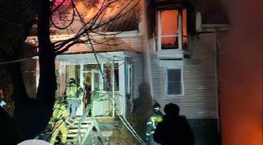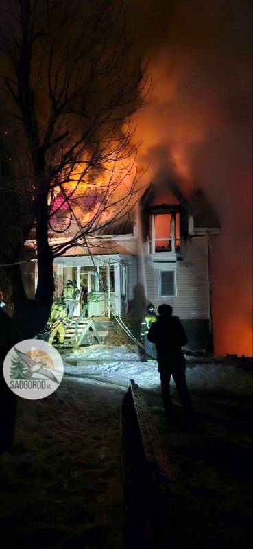 По словам очевидцев, огонь охватил второй этаж дома хозяйки зоопарка, под угрозой вольеры с енотами и страусами.