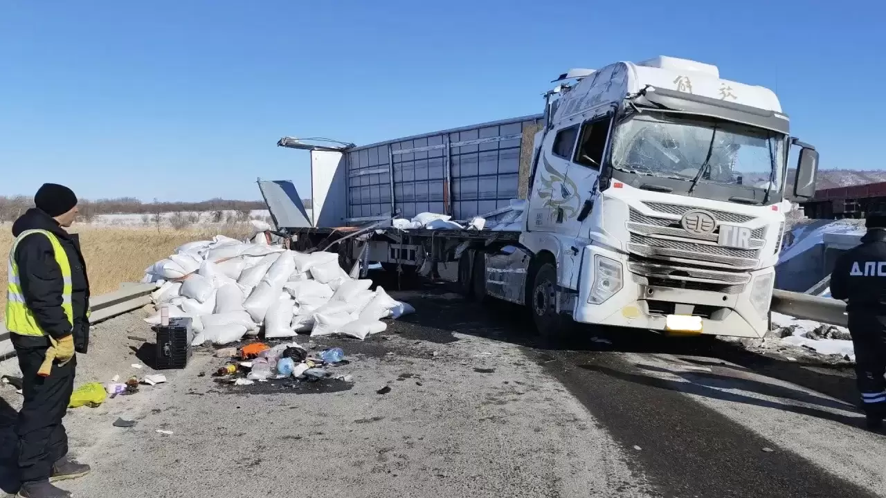 Большегруз перевернулся на трассе Владивосток - Хабаровск
