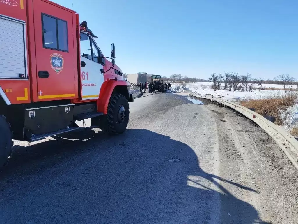 Пожарный расчет 61-ой части 28-го отряда противопожарной службы ГКУ Приморского края по пожарной безопасности принял участие в ликвидации последствий ДТП. Машину вернули на колеса и смыли топливо и осколки с дорожного полотна, - сообщили в Министерстве ГОЧС Приморского края.