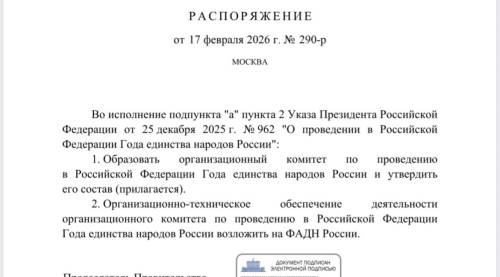 Организационный комитет образован во исполнении Указа Президента РФ о проведении в 2026 году Года единства народов России.