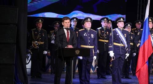 Олег Кожемяко со сцены Дома офицеров флота пожелал морякам здоровья, благополучия и успехов в службе.
