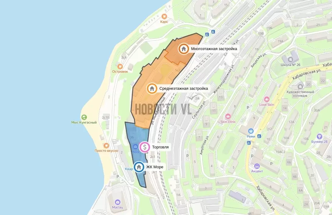В общественных обсуждениях никто не участвовал. Заявку подавало ООО «Домаск-ВЛ СЗ», застройщик, реализующий проекты в Уссурийске и Большом Камне. Идентификацию представители компании не прошли, поскольку не приложили необходимых документов. Но можно предположить, что именно эта организация планирует построить как минимум один из двух домов.