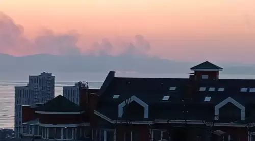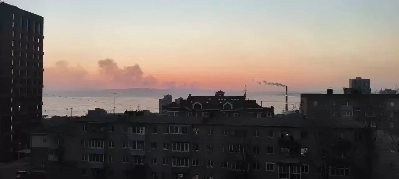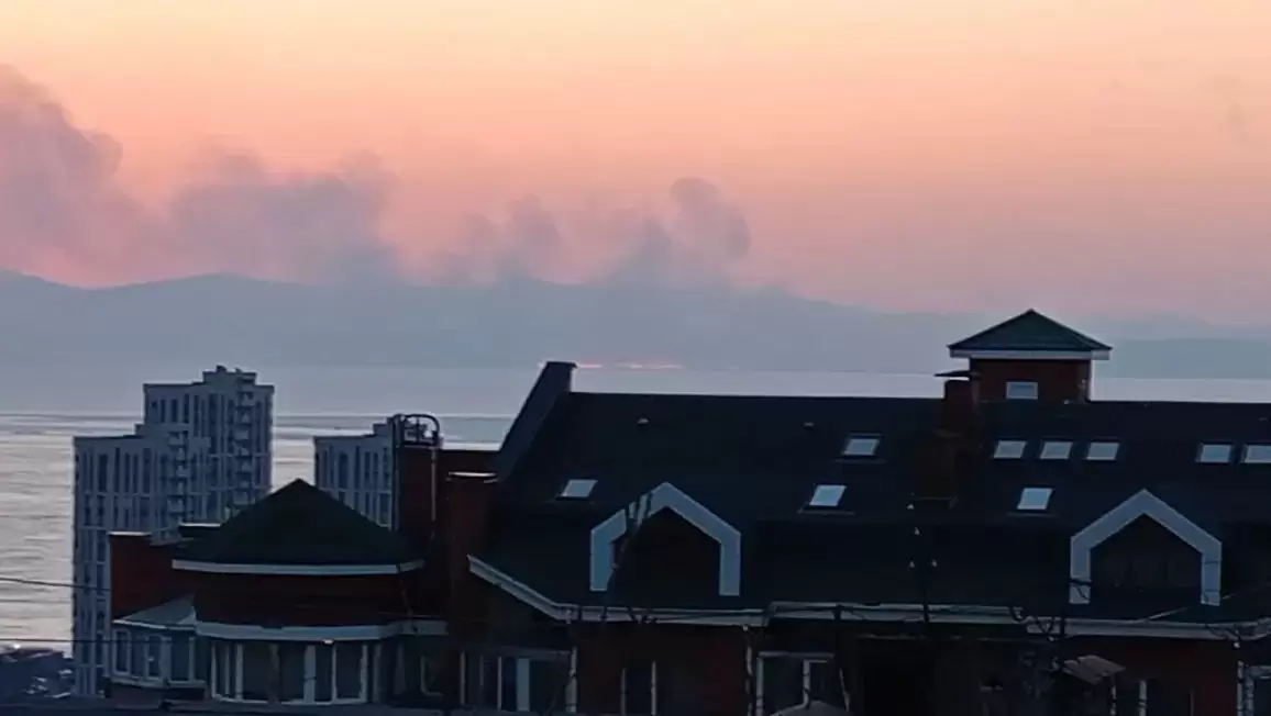 Черные клубы дыма видны из Владивостока - горит Южнее Песчаного.