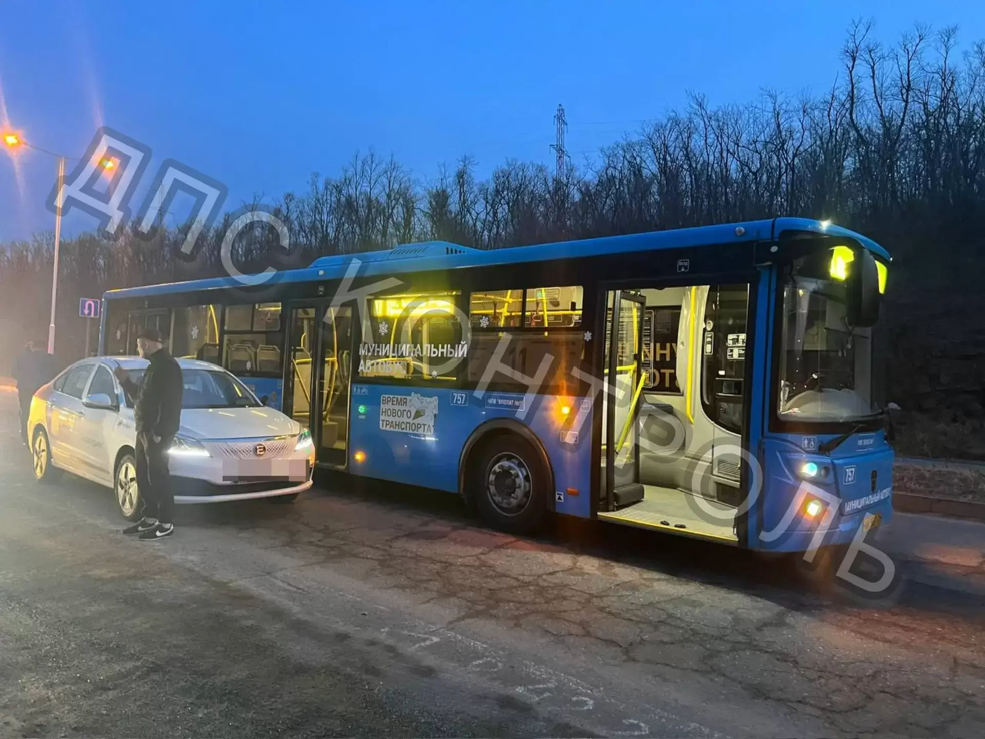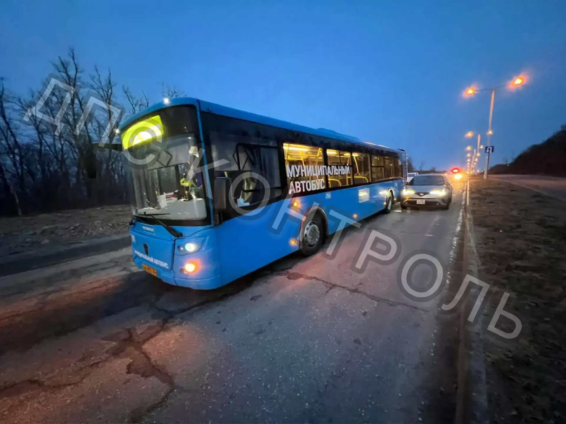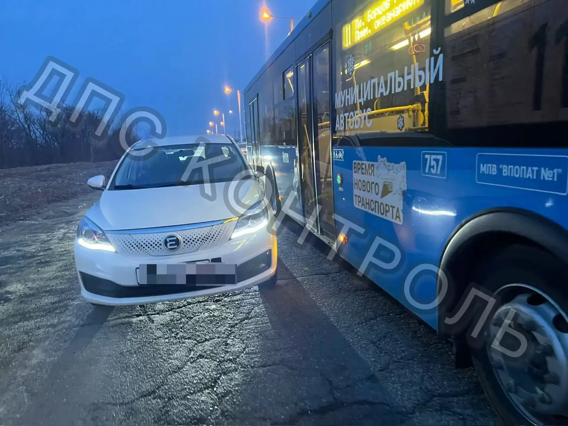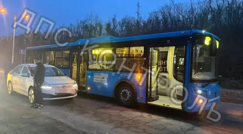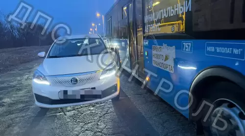 Двойное ДТП на Русском острове с участием каршеринга и пассажирского автобуса — дорога полностью перекрыта.