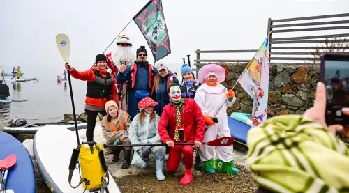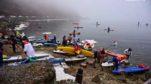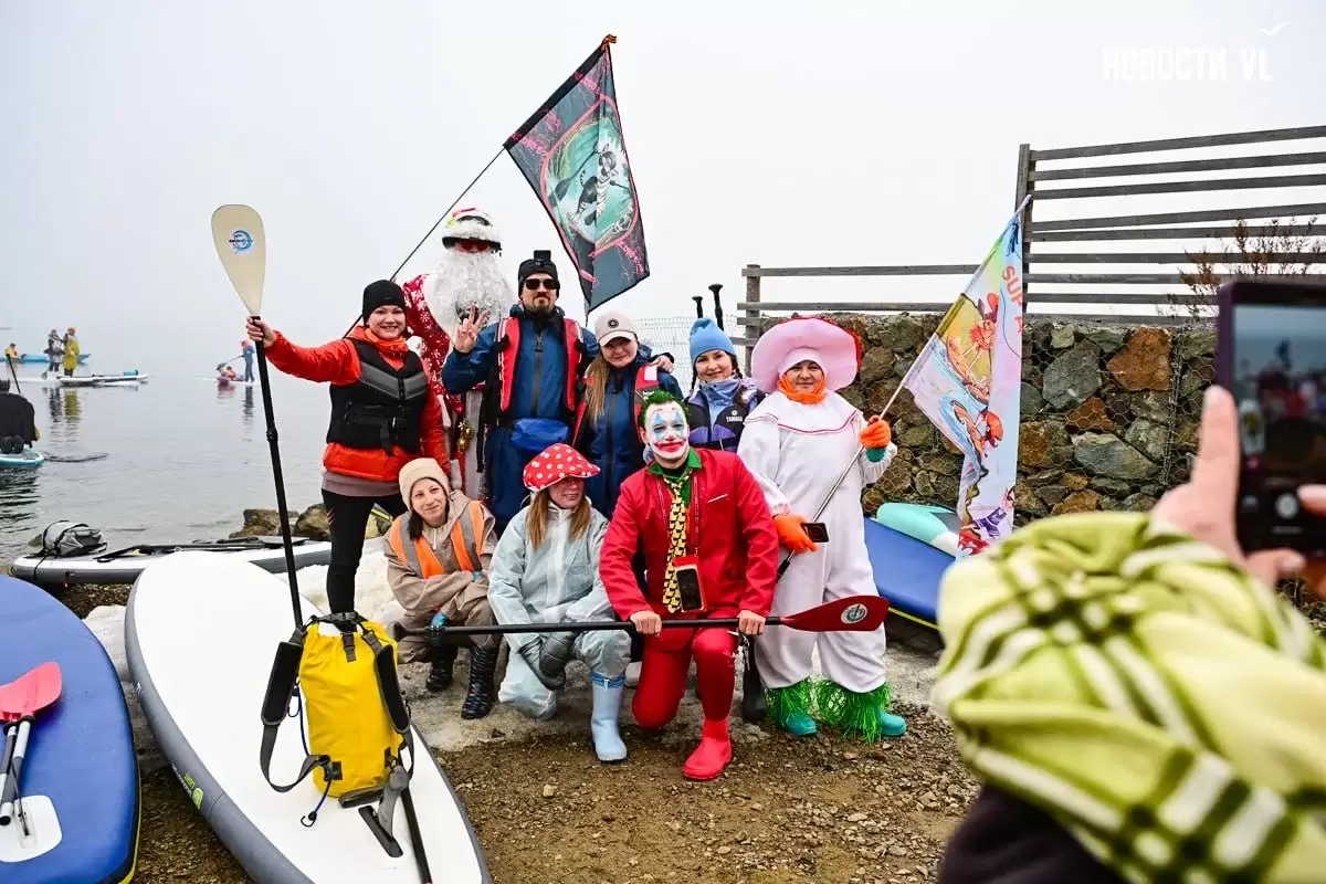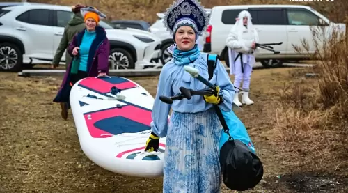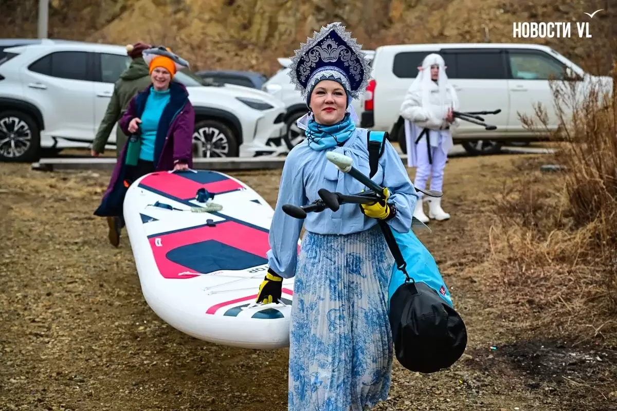 В районе Токаревской кошки десятки нарядных участников ежегодного "Угона льдины" уже вышли в море, - сообщает "Вести: Приморье" со ссылкой на Vl.ru. Они снова демонстрируют мастер-класс по созданию настроения – практически у всех яркие костюмы, звучит музыка, все поздравляют друг друга с завершением зимы.