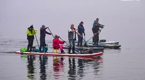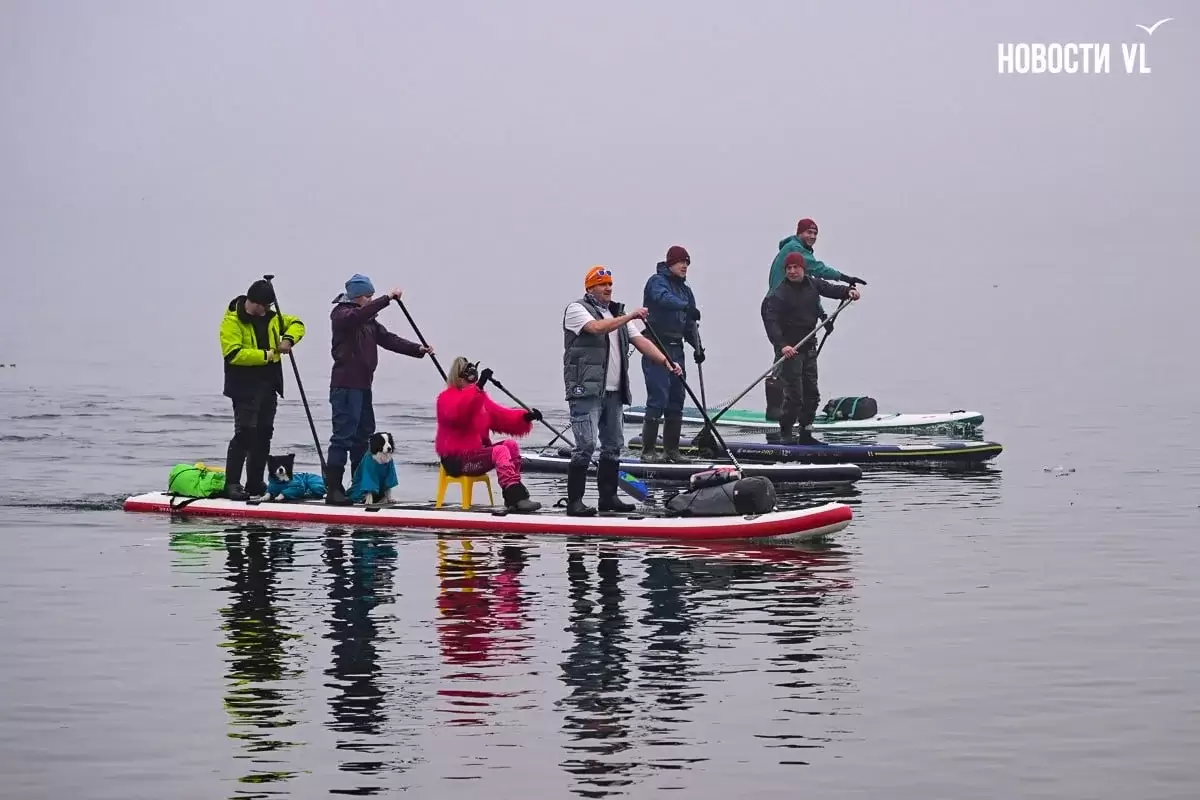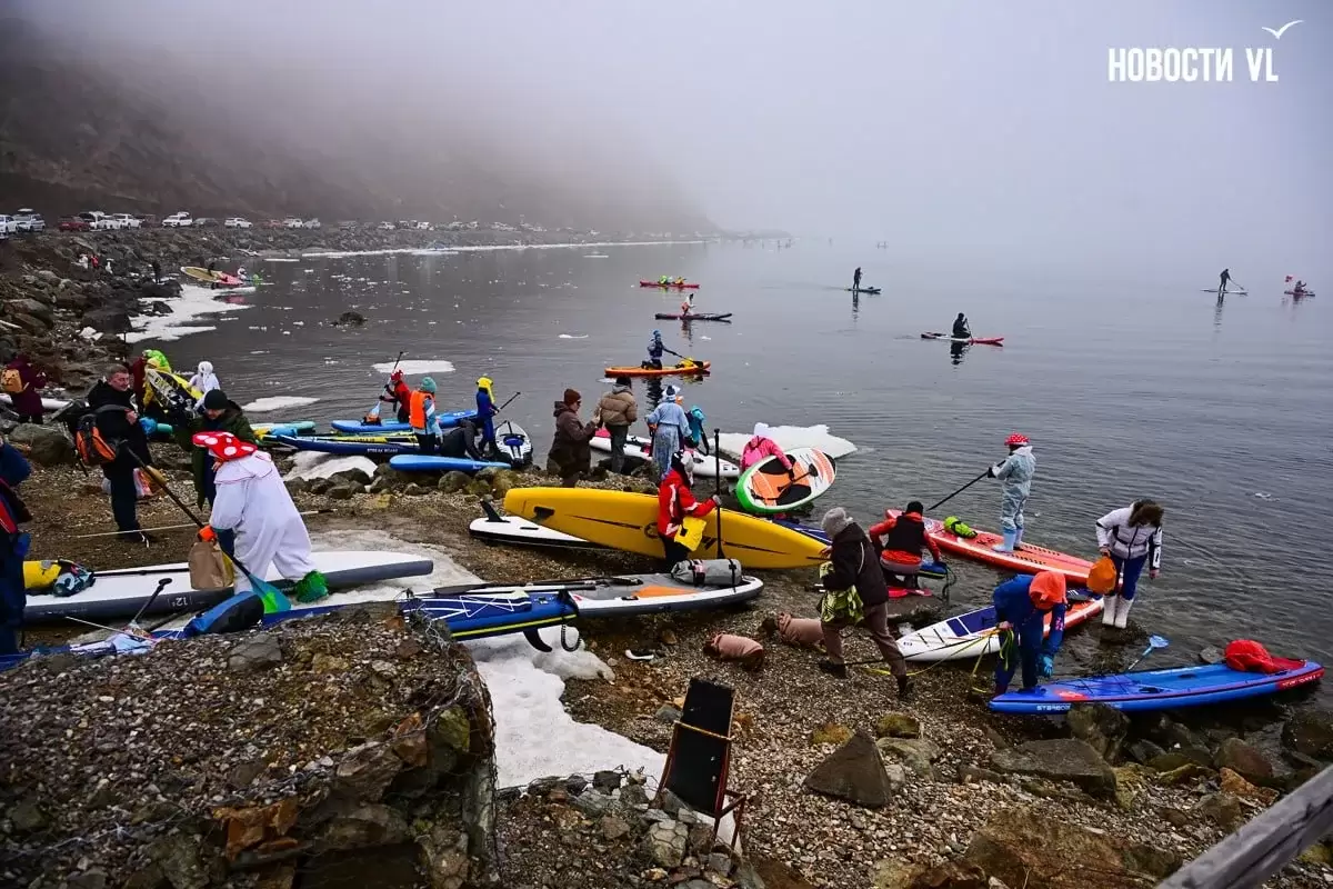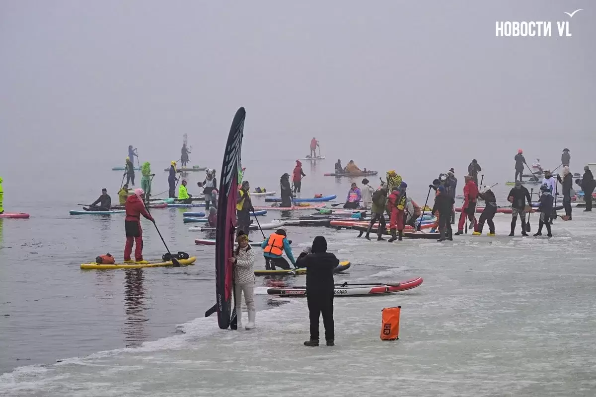 Десятки нарядных горожан вышли в море для "угона льдины" во Владивостоке