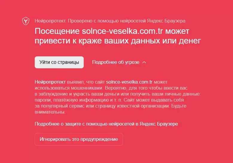 "Я хоть и сразу понял, что это скорее всего опасный сайт, но решил проверить как все работает. Там заходишь на сайт, и ... типа голосование... Выбираешь голосовать - попадаешь на страницу, где ты и должен ввести свой номер, а потом подтвердить через СМС. Естественно, я не стал вводить там номер и так далее. Потом решил скопировать эту ссылку в Яндекс - там сразу увидели угрозу (скрин красный)", - рассказывает известный блогер.