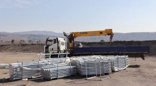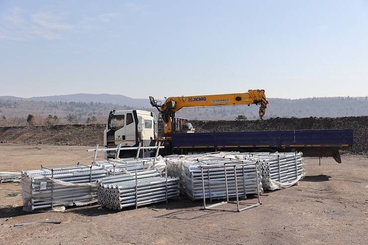 Сейчас выполнен монтаж 731 сваи под ограждение стрелковых зон «500», «2500» (открытых галерей) на протяжении 2167 метров. Всего будет произведен монтаж 2147 свай. Созданы монолитные конструкции двухэтажного здания. Смонтированы опоры ЛЭП.