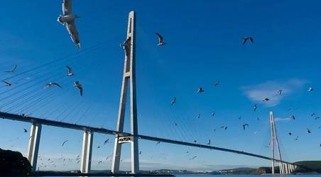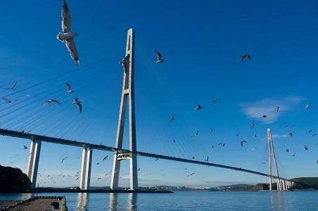 В ночь с 11-го на 12-е апреля 2012 года, над проливом Босфор-Восточный установили замыкающую панель Русского моста. В тот момент строители двух половин грандиозного сооружения, не сдерживая эмоций, прямо на стыке обнимались и пожимали друг другу руки, сообщают «Вести:Приморье».
