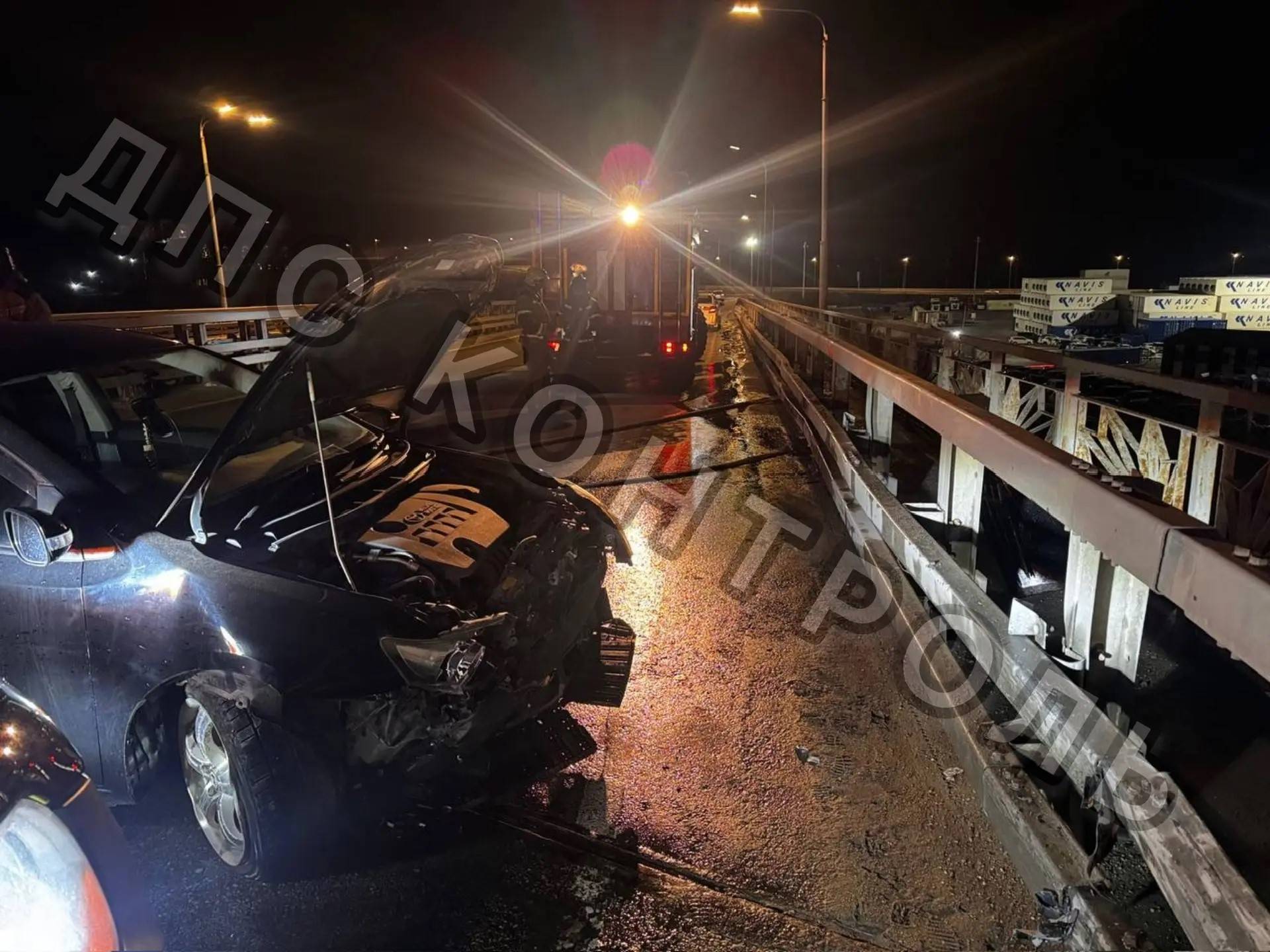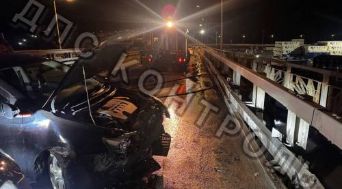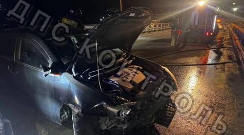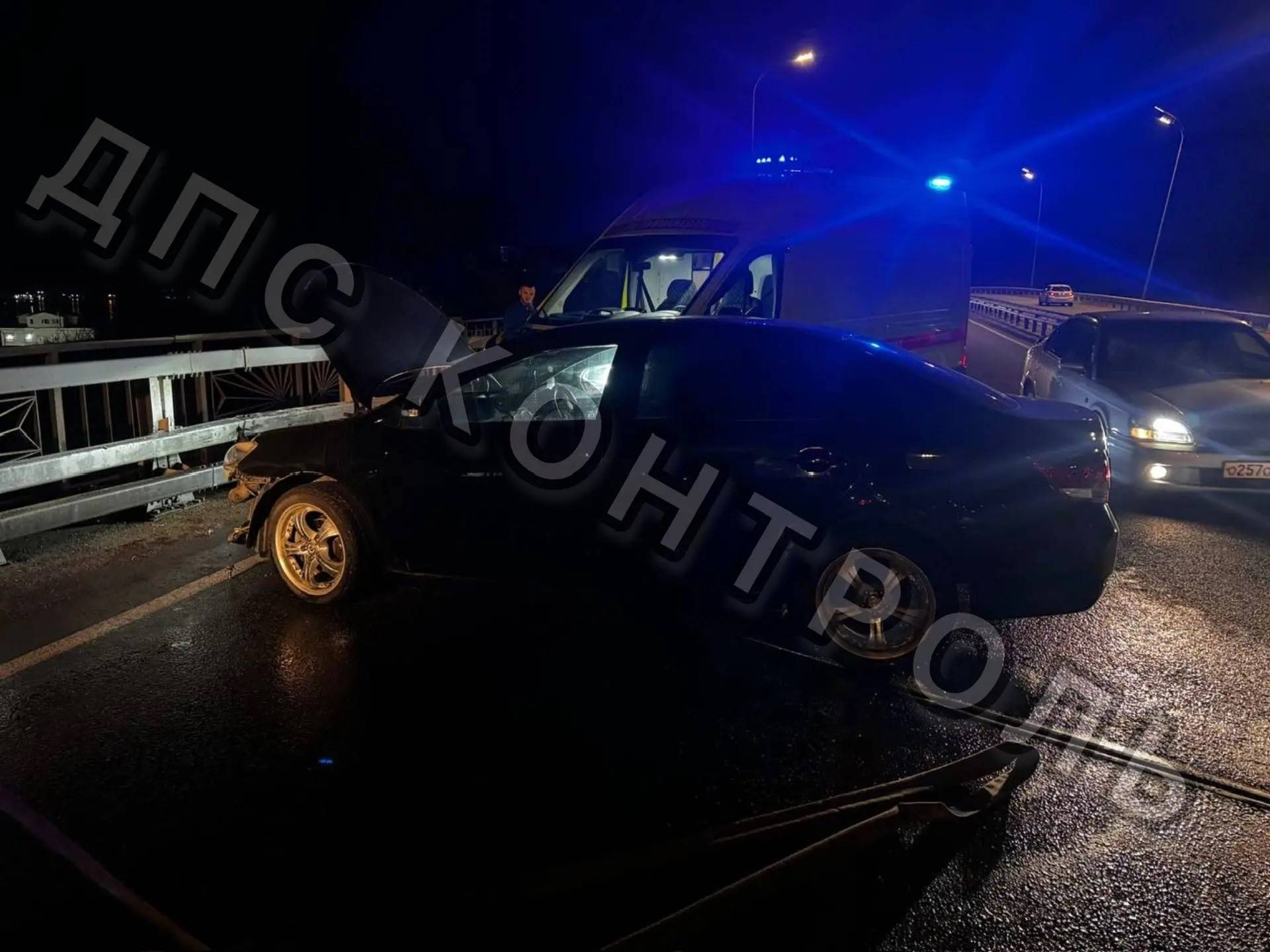 Жесткое ДТП произошло во Владивостоке перед Русским мостом — Toyota Allion размотался об леера.