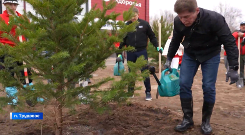 Президент поручил — губернатор сделал. Территория поликлиники в поселке Трудовое заиграла весенними красками. Здесь прошла масштабная акция по озеленению. В ней приняли участие первые лица края.