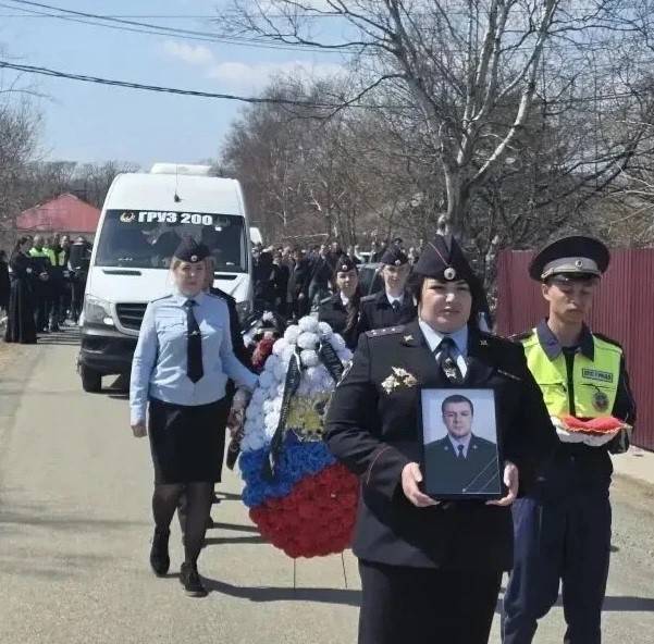 На траурной церемонии прощания, которая прошла в Надеждинском районе, собрались родные и близкие погибшего, его сослуживцы, руководство отдела МВД России по Надеждинскому району, руководство Управления МВД России по Приморскому краю, а также местные жители. В знак воинской чести прозвучал троекратный оружейный залп.