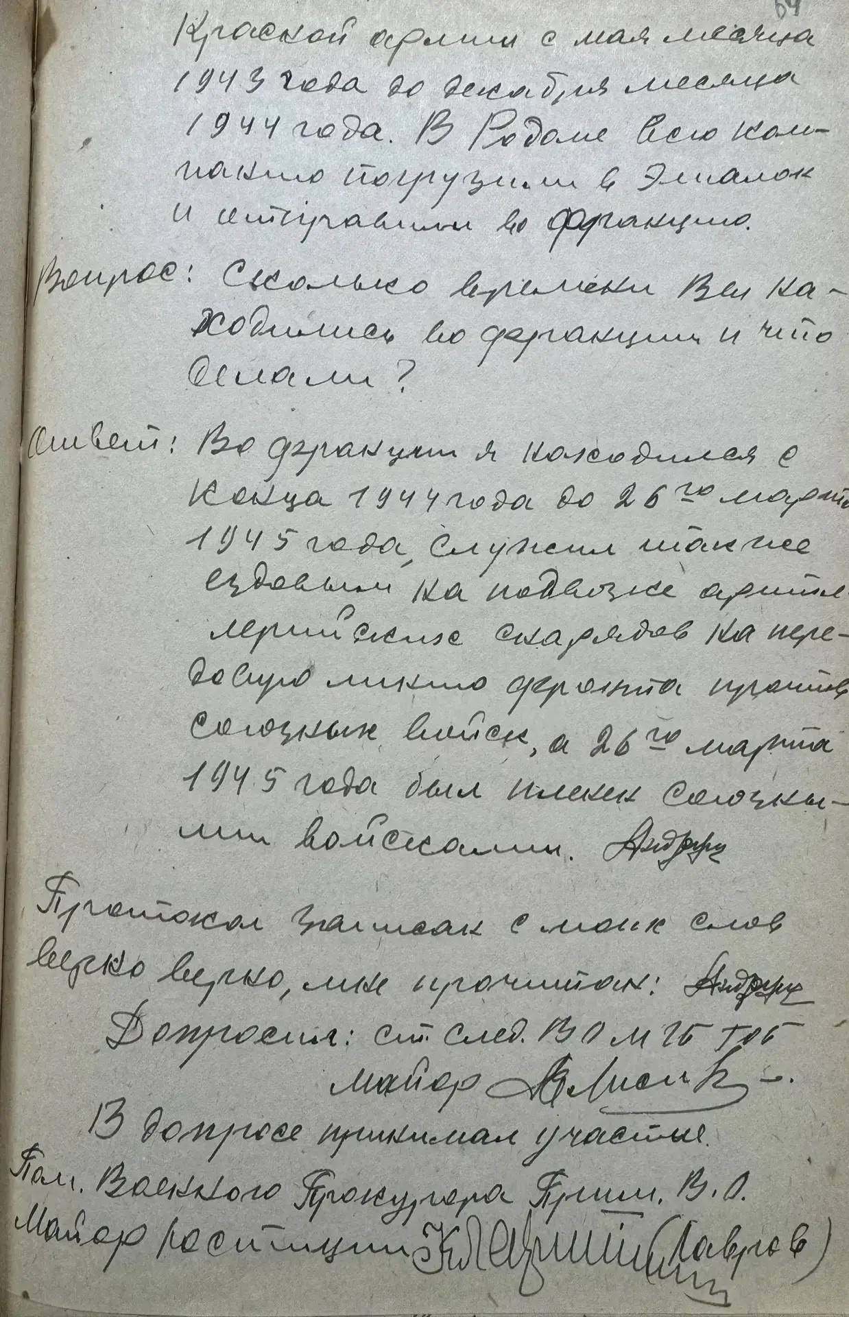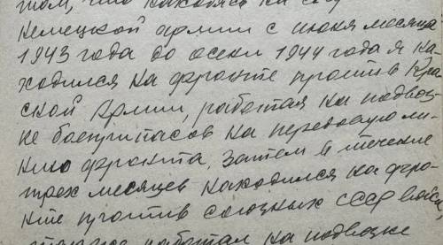 Андрющенко Михаил, проживая на оккупированной немцами территории по месту рождения, 7 апреля 1943 году добровольно вступил в немецкую армию, где прошел строевую подготовку и принял присягу на верность службы немецкому командованию. С мая 1943 года по март 1945 года находился на фронте против Красной Армии и союзных войск СССР. 26 мая 1945 мая был пленен союзными войсками. 7 мая 1946 года Андрющенко М. И. арестован сотрудниками водного отдела МГБ Тихоокеанского бассейна. В ходе следствия Андрющенко М. И. свою вину признал, дал подробные показания о характере своей службы в немецкой армии. По его словам, он работал на подвозе артиллерийских снарядов на передовую линию фронта.