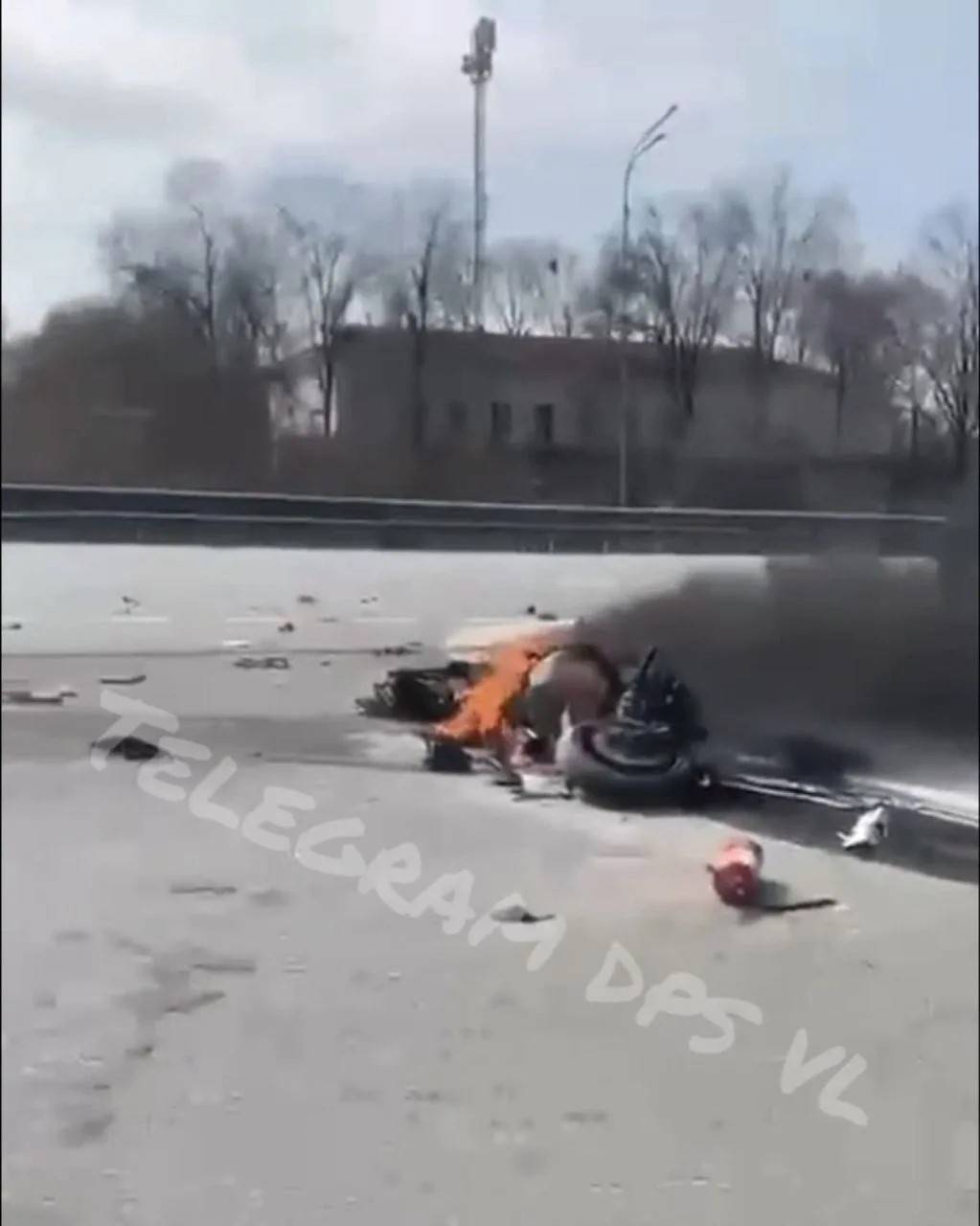 Байкер отлетел на десятки метров, а мотоцикл загорелся - жесткое ДТП во Владивостоке