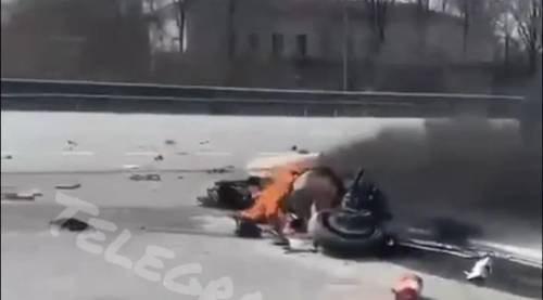 По данным из соцсетей, мотоцикл влетел в зад минивену Honda, после чего загорелся, сам байкер отлетел на десятки метров от места столкновения.