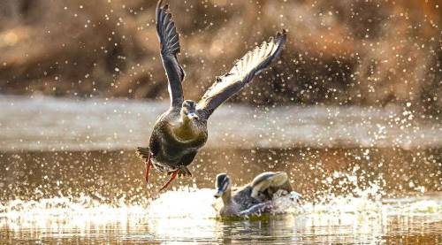 Птицы спокойно скользят по воде, прячутся в прибрежных зарослях и держатся особняком. Компанию им составляют многочисленные кряквы — менее яркие, но более активные и шумные обитатели водоёма.
