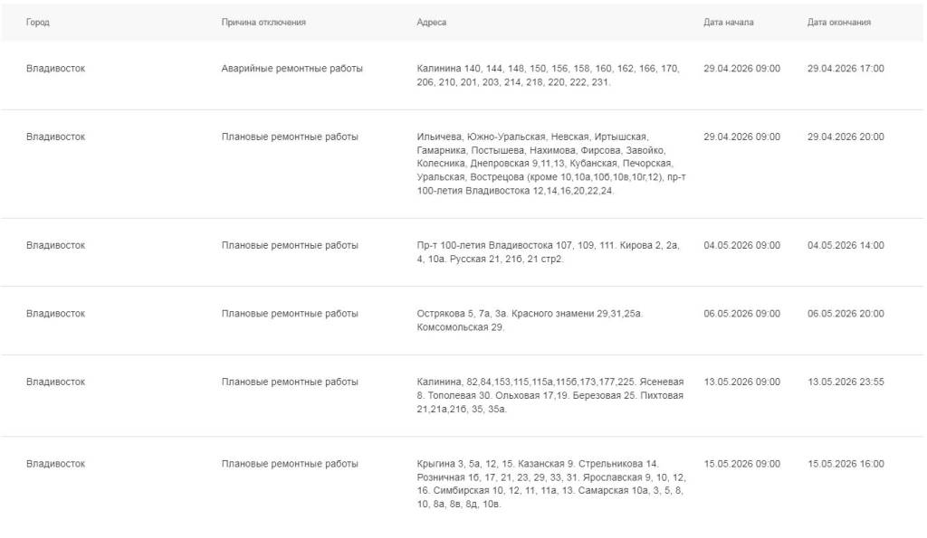 Серия локальных плановых ремонтных работ на истемах холодного водоснабжения запланированы во Владивостоке в конце апреля - первой половине мая, сообщает сайт Примвода.