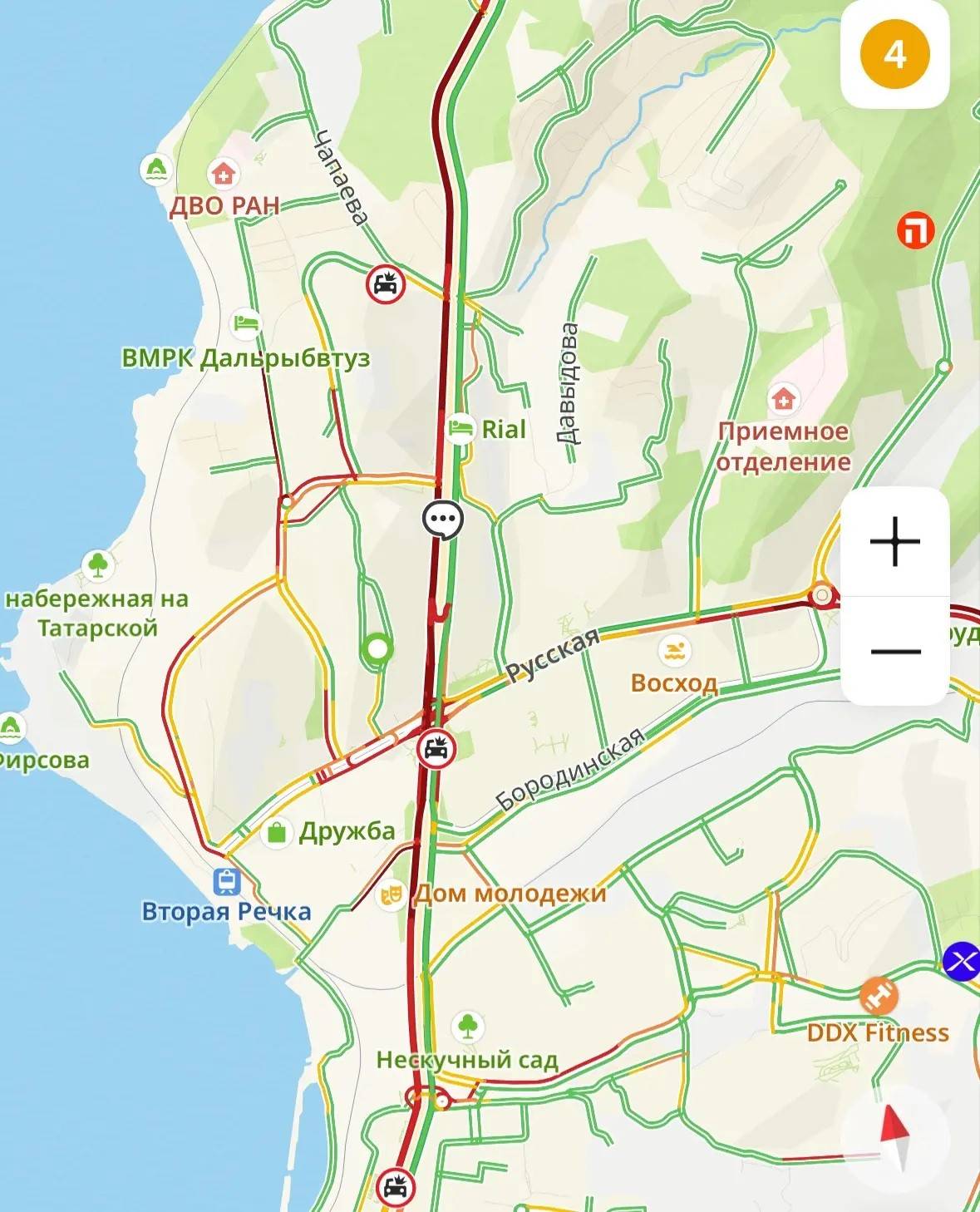 Огромная пробка образовалась во Владивостоке из-за ДТП — участники авария перекрыли две полосы движения, - сообщает "Вести: Приморье" со ссылкой на соцсети.