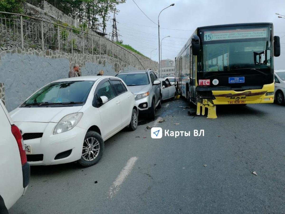 Во Владивостоке произошло массовое ДТП с участием автобуса №15