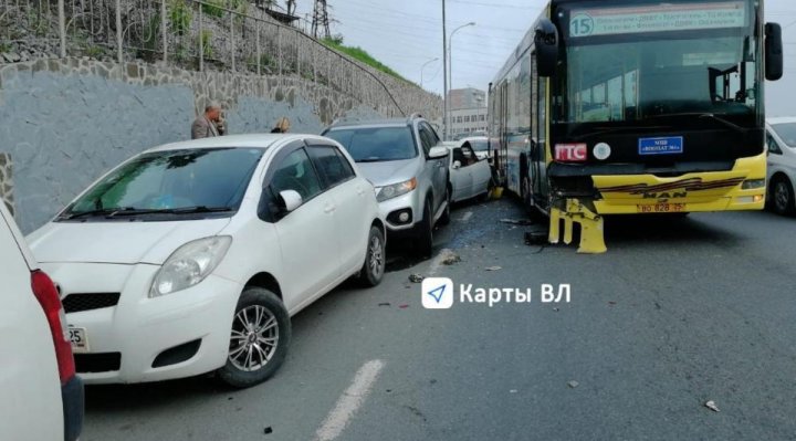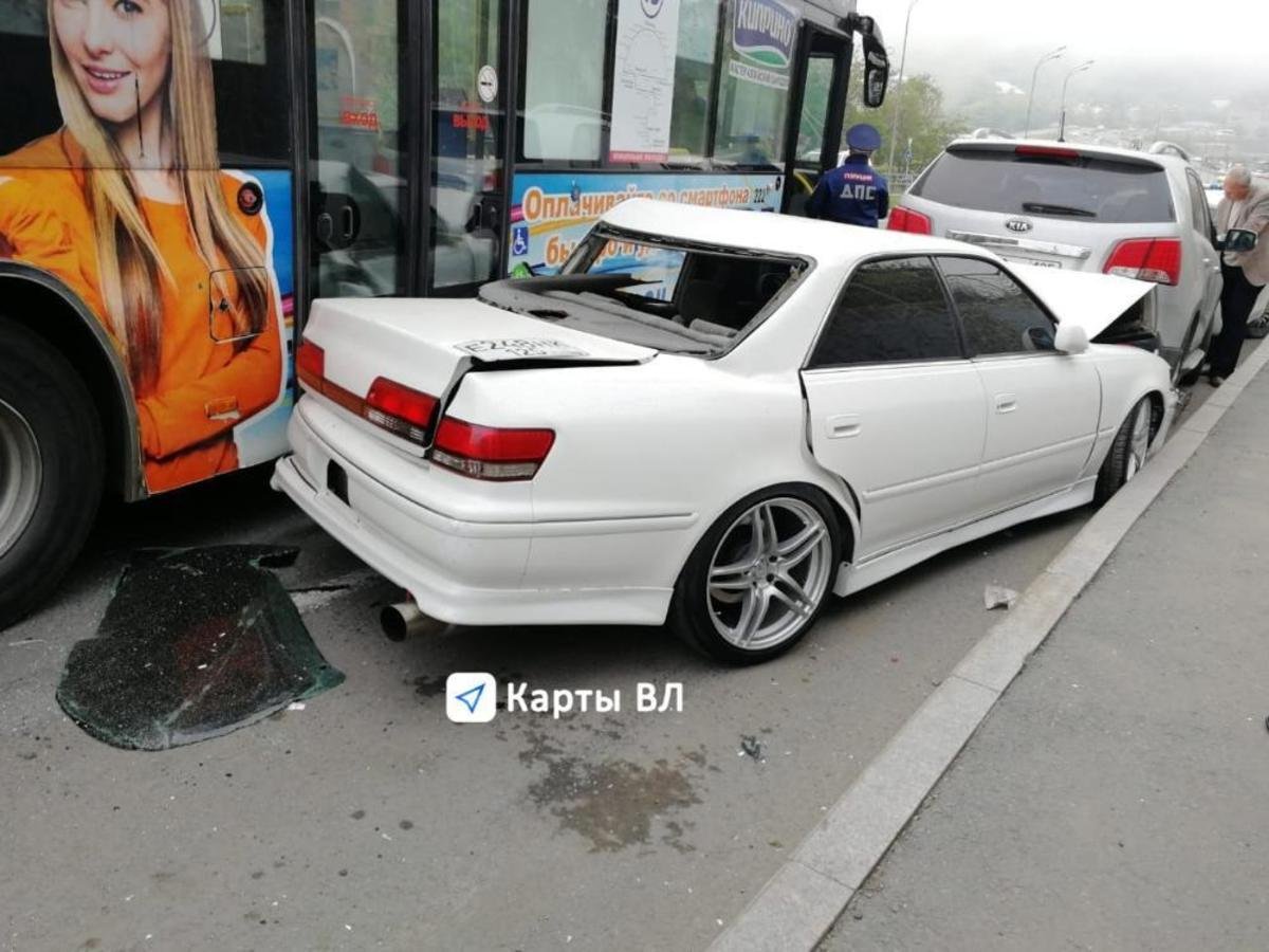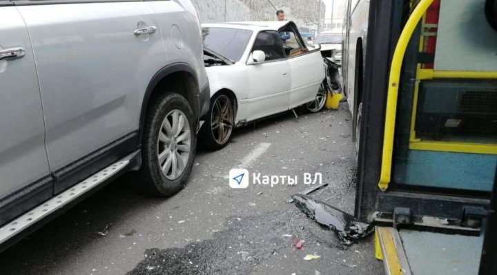Как сообщает "Вести: Приморье" со ссылкой на Vl.ru, водитель автобуса двигался со стороны Окатовой в направлении Катерной. По словам мужчины, он ехал по правому ряду и хотел перестроиться в левый, но его не пропустил поток машин. Man на полном ходу протаранил Toyota Mark II, седан отбросило на Kia Sorento, а джип на Toyota Vitz.