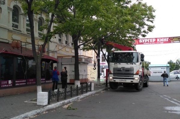 15 июня во Владивостоке проходит демонтаж незаконных торговых объектов и точек питания на улице Адмирала Фокина. Под снос пошли девять незаконных объектов.
