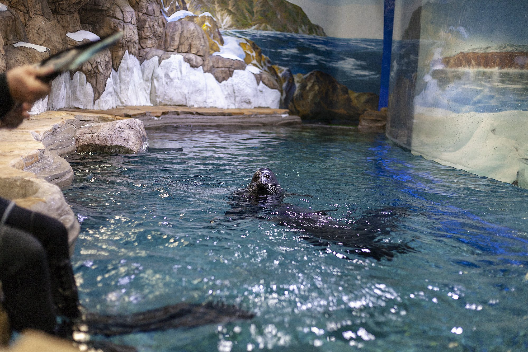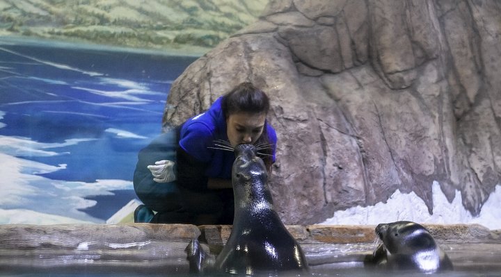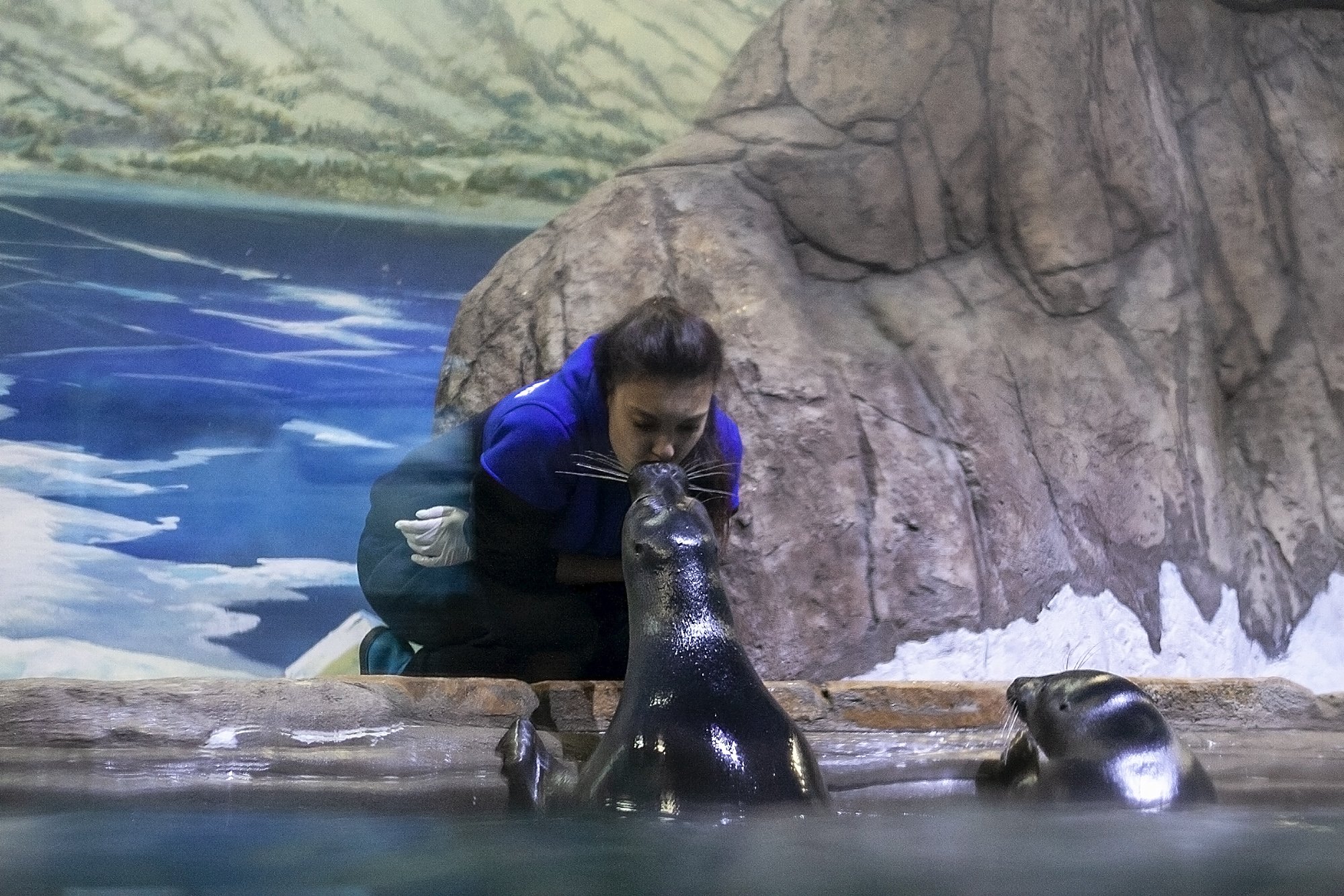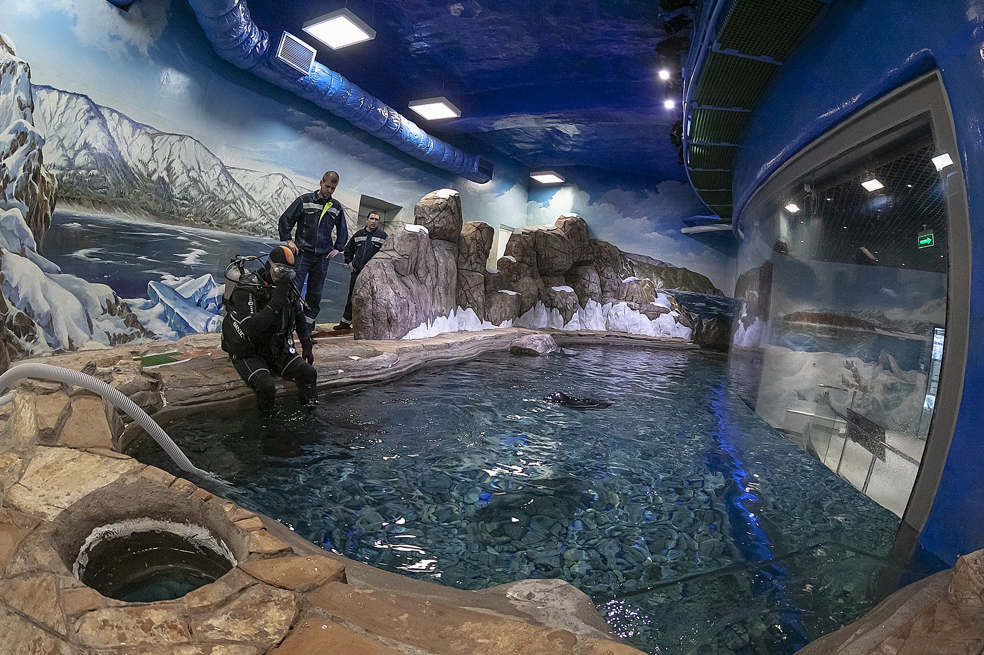 - Альф, Бусинка и Тучка уже привыкли к «гостям», - говорит старший специалист дельфинария Дарья Максименко. - Байкальские нерпы дружелюбны, но очень осторожны. Поначалу, конечно, прятались, отсиживались в уголках. Мы совмещали визит водолазов с кормлением, чтобы у животных была положительная эмоция. Сейчас нужды в этом уже нет…
