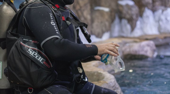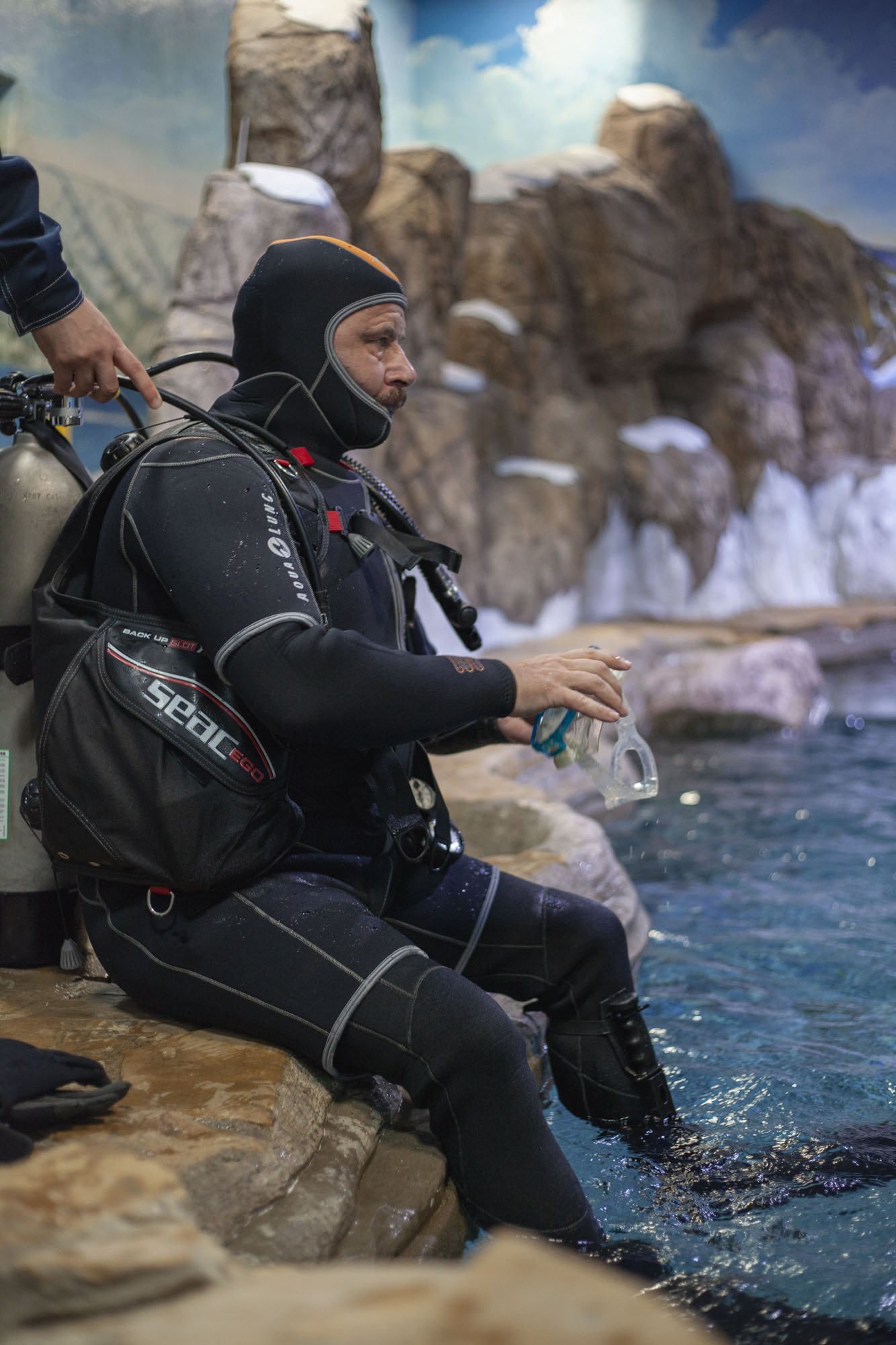 У водолазов в Приморском океанариуме своя специфика: они работают в обществе животных. При этом на первом месте - безопасность гидробионтов. Бассейны с млекопитающими чистят обязательно в присутствии тренеров. У каждого животного - свой характер, свои особенности, и тренер знает их лучше, чем кто бы то ни было. К тому же млекопитающие требуют общения, а водолазу нужно работать…