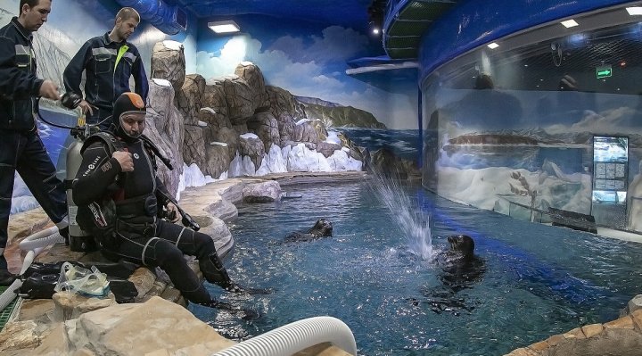 В Приморском океанариуме регулярно чистят бассейны. Как к этому относятся местные обитатели, - об этом рассказали сотрудники океанариума.
