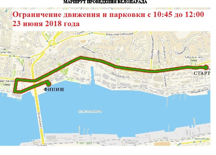 - по маршруту велопарада – от остановки «Гайдамак» по улице Светланской на набережную Цесаревича с 10:45 до 12:00;