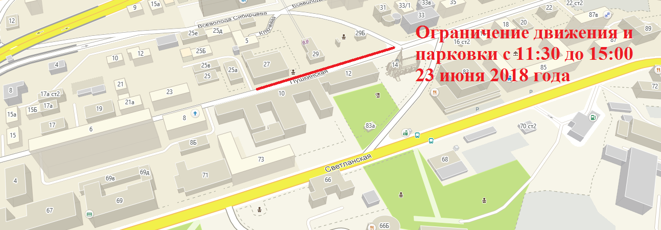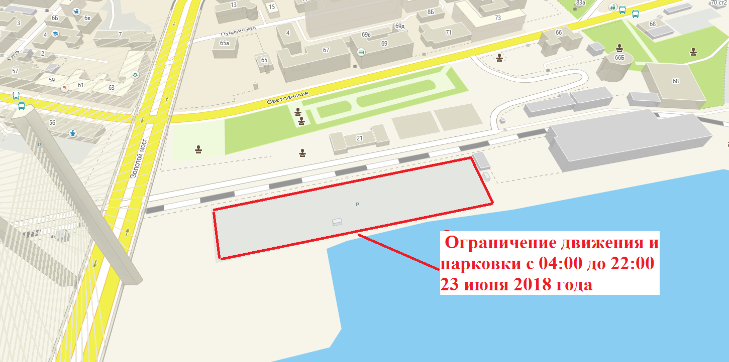 На данные периоды времени объезд будет осуществляться по улицам Всеволода Сибирцева, Пушкинской и Светланской.