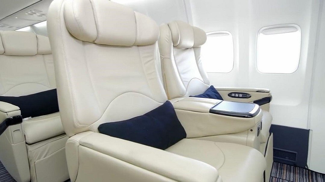По данным сайта туроператора, самолет Boeing 757-200 (фото 1,2) по удобству и сервису больше напоминает отель высокого уровня. Цены на поездку начинается от $105 тыс. На борту воздушного судна установлено 85 кожаных кресел (фото 3) ручной работы (вместо 239 при стандартной комплектации такого типа воздушных судов), оснащенных мультимедийными системами и раскладывающиеся в полноценную кровать, также туристам предоставляются пледы из кашемира, наборы эксклюзивной косметики, неограниченный Wi-Fi, персональное меню от шеф-повара и услуги консьержа.
